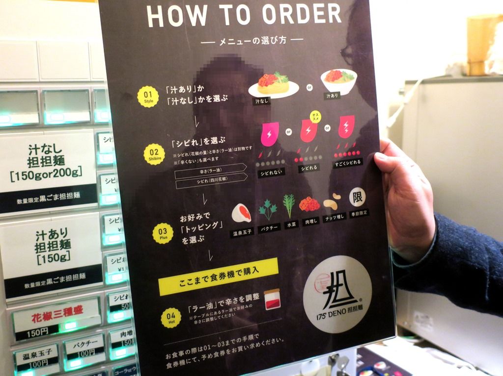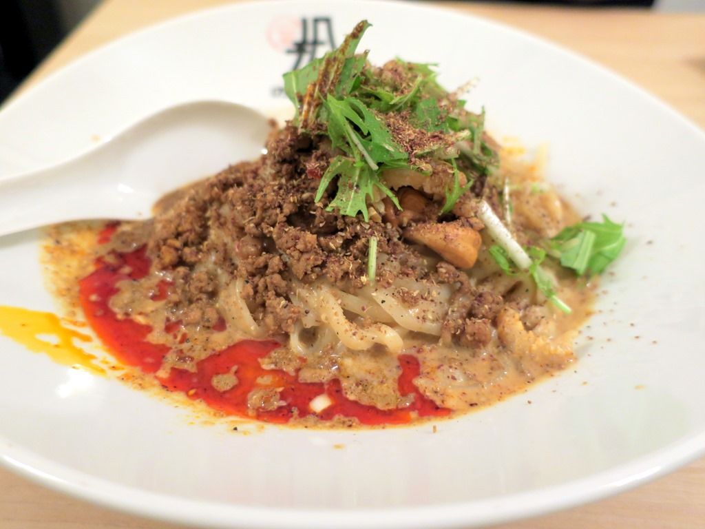 主なメニューは、汁なし担担麺シビレない・シビれる850円、すごくシビれる900円、汁あり担担麺シビレない・シビれる900円、すごくシビれる950円、他。汁なし担担麺は150g200g同料金、汁ありは150g。