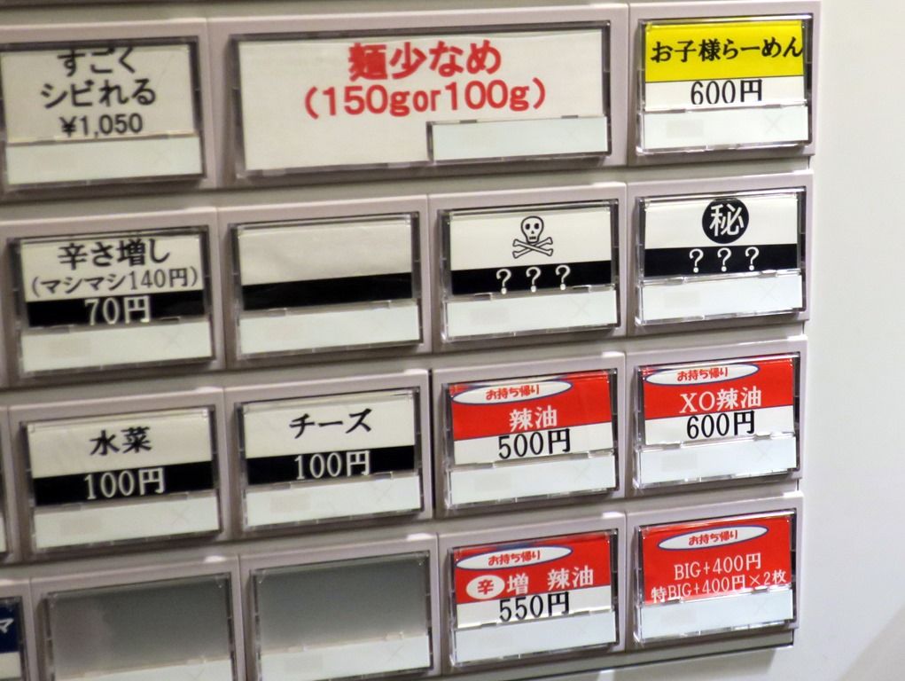 券売機ドクロマークとマル秘のボタンって何?今回はレセプションなのでフリー。ですが、当初予定されていた汁あり・汁なし両方の提供は見送られたらしく、汁なしのみの提供。汁ありが無くてちょっと残念!