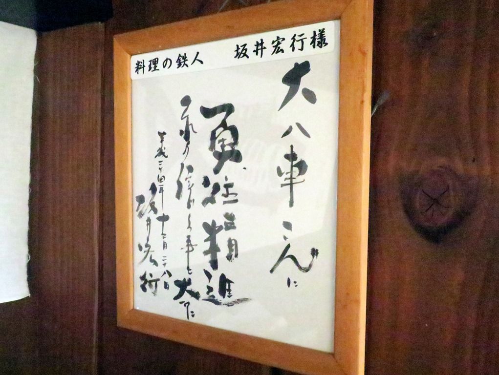 壁面には以前もあった、料理の鉄人坂井宏行さんの色紙。