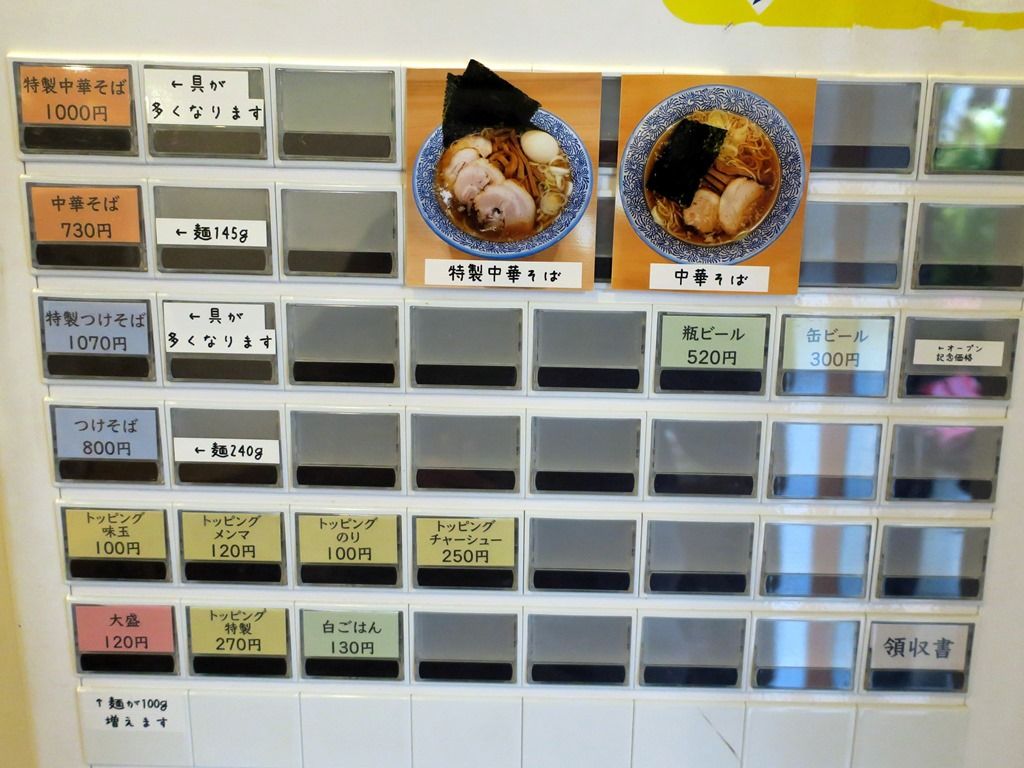 定刻に暖簾がかかってオープン。入店すると、まず券売機で食券購入です。余談ですが、券売機はもりの中華そばから継承したもの。