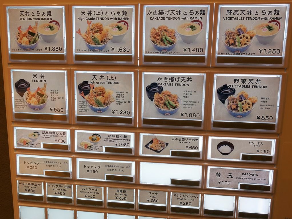 天ぷら単品やドリンクなど、追加注文は席で前金制、スタッフが食券を買って厨房にまわす方式。