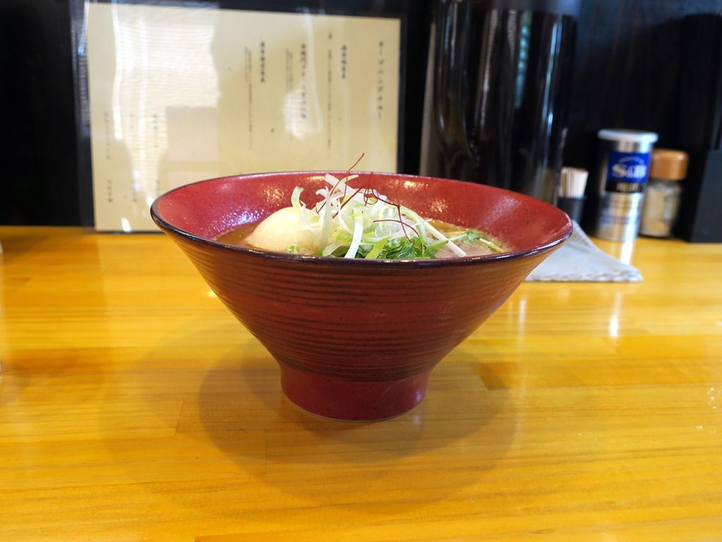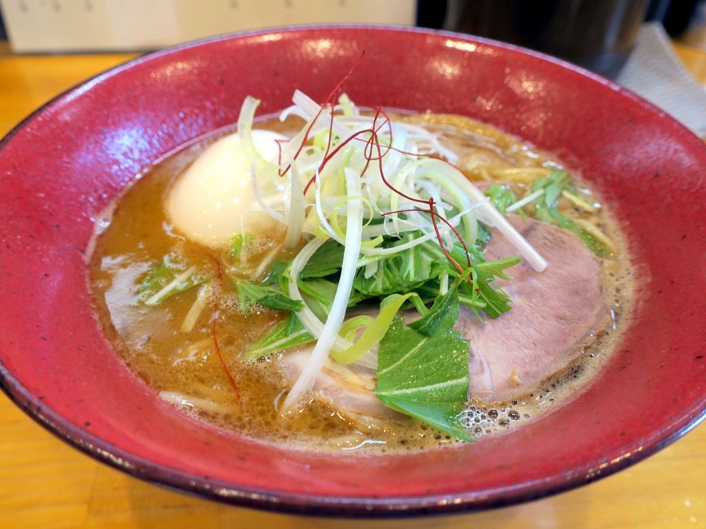 具はチャーシュー、めんま、水菜、白髪ねぎ、糸唐辛子、オープン記念の味玉は初日・2日目にサービス。