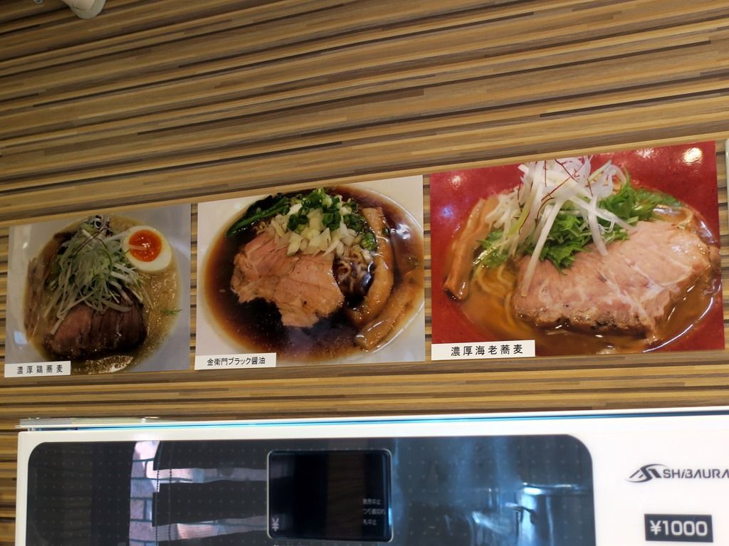 この日の提供メニューは、濃厚鶏蕎麦、濃厚海老蕎麦、金衛門ブラック醤油の3品。券売機ではブラックもX印に空目しましたが、後であったことに気づいて、実はそちらも気になってたり。