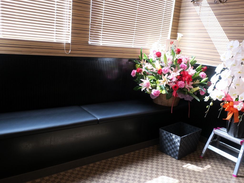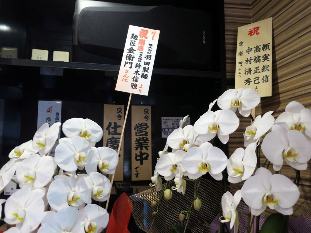 券売機横には、羽田製麺からの開店祝花。
