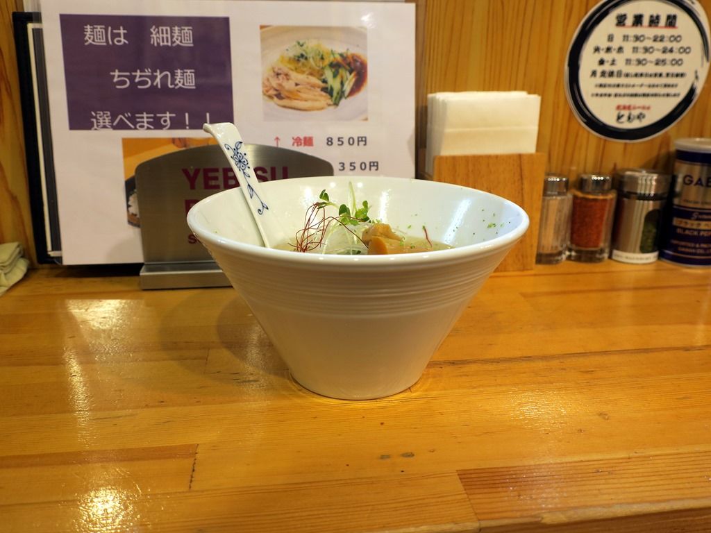 2018年3月5日オープン。「北海道らーめん ともや」の営業時間外に間借り営業。月曜だけ昼営業あり、他の日は深夜営業なので、ムタヒロ@錦糸町の後、昼やってる間に向かいますw