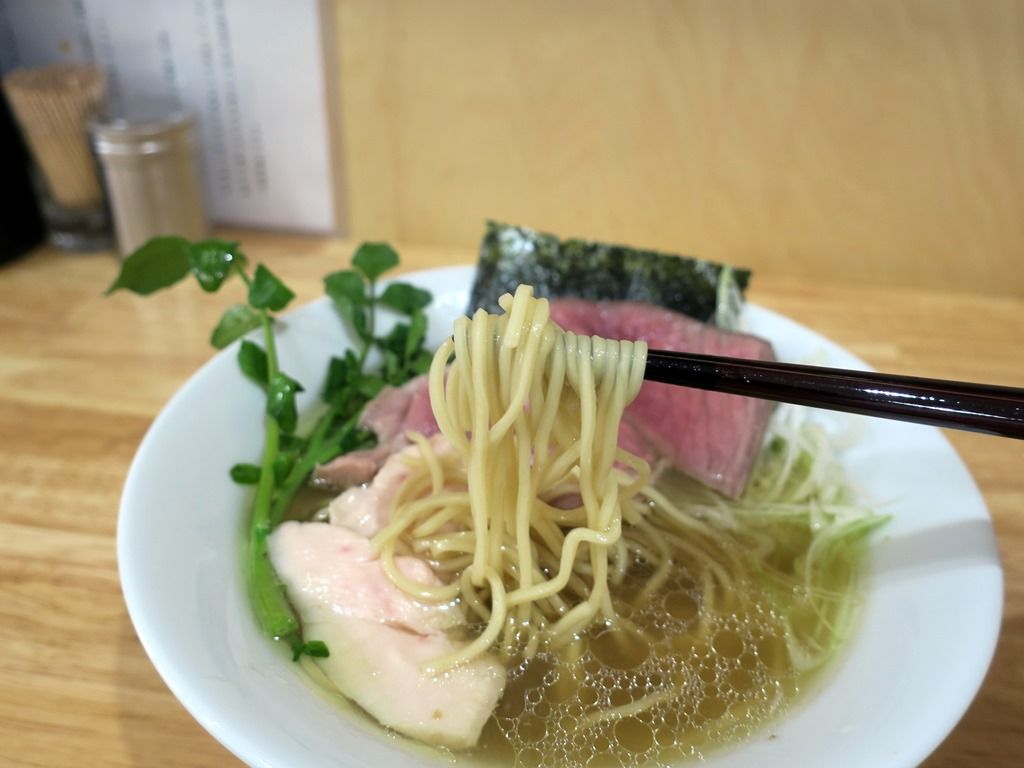 旨味を幾重にも重ねた様な立体的で奥行きのある深いコクがあり、実に意識高いテイスト。清湯なのに骨太な味わいで、すごく美味しい!ただ、個人的には甘みがとても強くて、その甘さが繊細な出汁の味わいをややボヤケたものにしてる印象も。