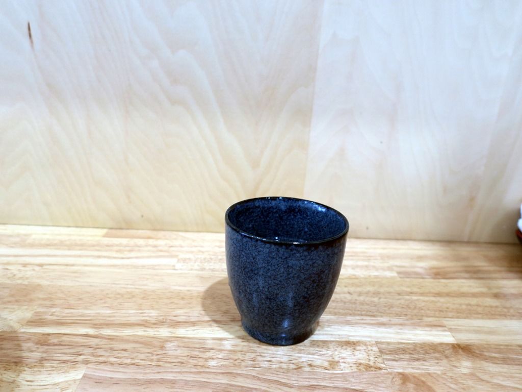 お冷は、カウンター端の給水器からセルフで。コップは湯のみ茶碗。
