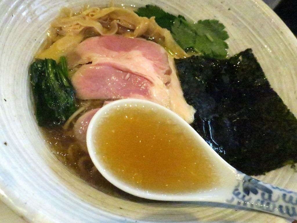 スープはさらさらの清湯白醤油味。駒込で当初「醤油そば」として提供されていたメニューの進化形。鶏と煮干しの淡麗スープ。無化調で出汁の旨味たっぷりながら、ほのぼのとした柔らかくて優しい味わい。癒し系のしみじみと沁みる味で、とっても美味しい!