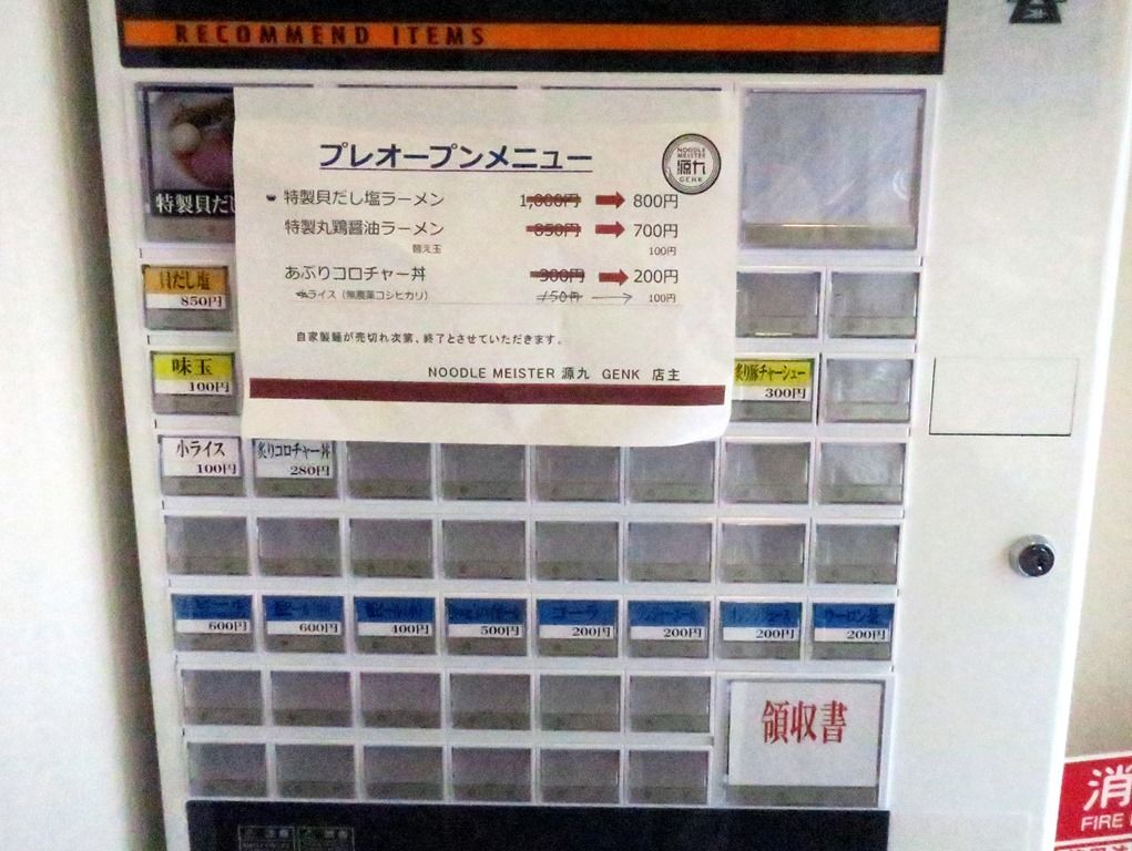 定刻3分前到着で既にオープン中。入店するとまず券売機で食券購入です。が、プレオープン中は券売機未稼働で前金制。