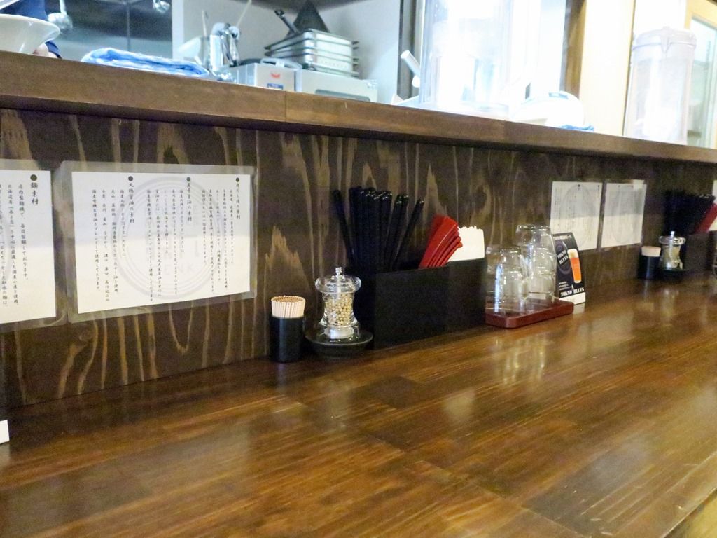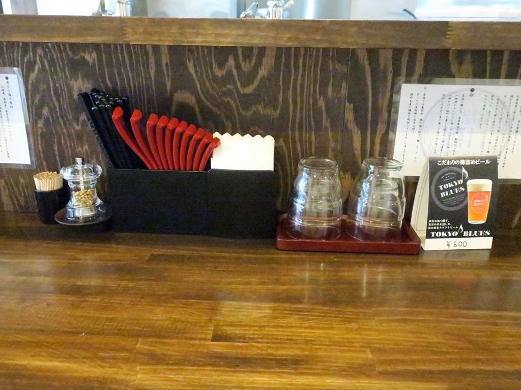 BGMはジャズ。箸は洗い箸でエコ仕様。卓上調味料は胡椒。