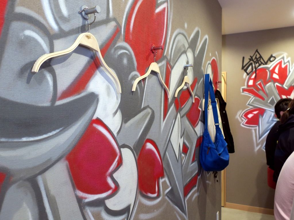 壁面には鮮やかなペイント。スタッフは、厨房5ホール1の男性6名。眼光鋭い凛とした方が店主さんだったかな。