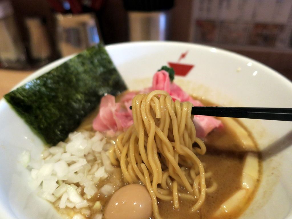 麺はカネジン食品製で、中細のゆるやかにウェーブのついたタイプ。表面に少しざらつき感のある仕立てで、ただでさえねっとりとしたカニスープが、麺に絡みまくります。旨すぎて箸がノンストップです!