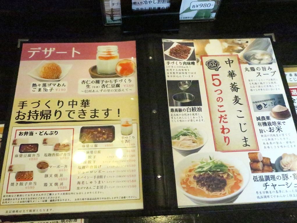 グランドメニューも一応掲載。表表紙「中華蕎麦こじま 5つのこだわり」、裏表紙「デザート」