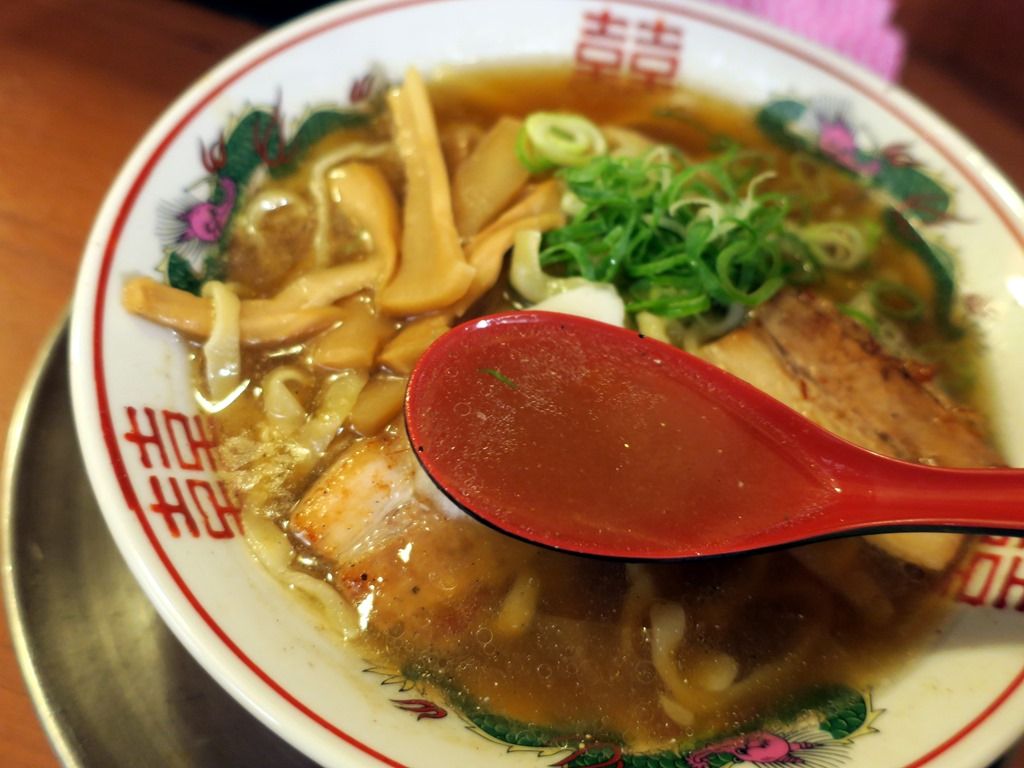 スープは、さらさらの清湯醤油味。ブログ・ツイッターによると、「鶏ガラ・煮干・宗田節・香味野菜で仕上げた、昔ながらのスープに、菅野製麺謹製特注麺・もっちもちの手もみ麺を合わせました!派手さはありませんが、地味な美味しさがあります。」とのこと。