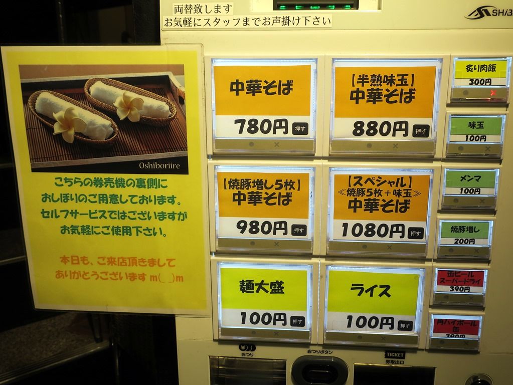 19:50頃到着で、店内満席外待ちの先頭に。空いてても待ちがあっても、まず店頭の券売機で食券購入です。