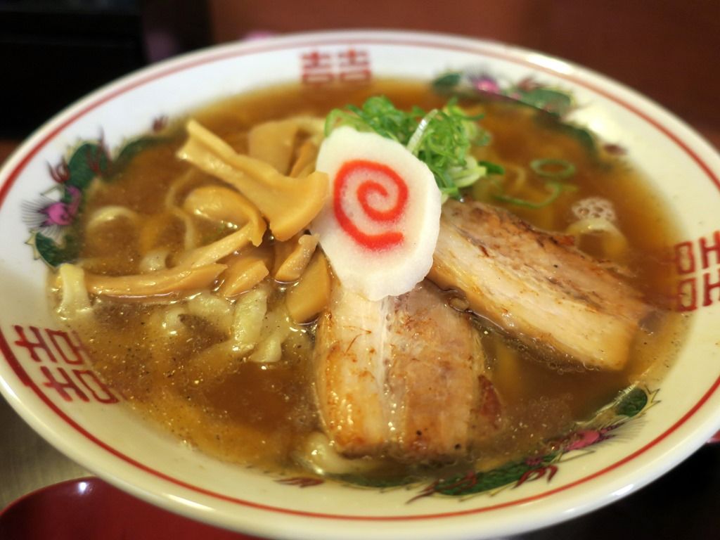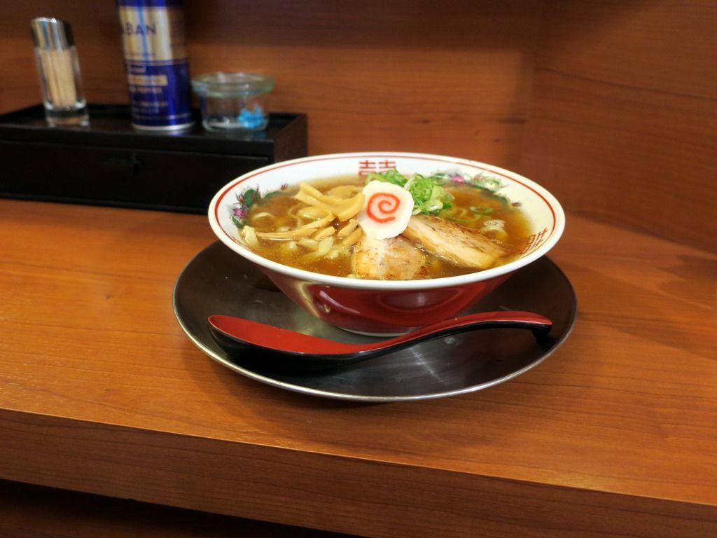前店と同じ昔ながらのラーメン丼が銀の受皿に載って着丼。