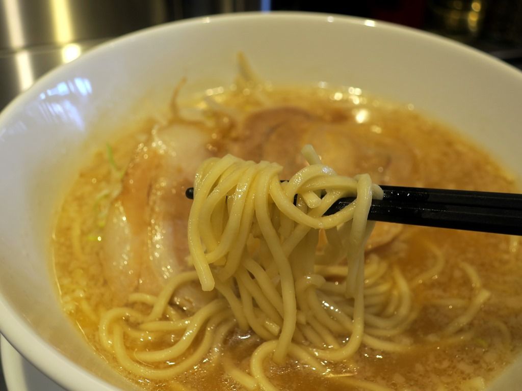 麺はストレート中太タイプ。油そばと食べ比べるとだいぶ細く感じられます。