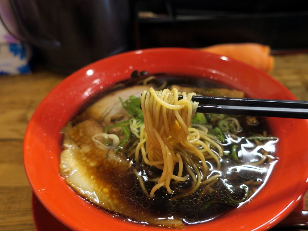麺はミネヤ食品製のストレート中細タイプ。大阪府枚方市にある製麺所。ちょっと粉っぽい感じがらしくて、いいですね~!
