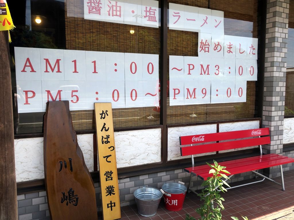 居食屋鮮や→串焼川嶋の跡地。ってことでこちらは、「串焼川嶋」から「らーめん川嶋」へと、居酒屋からラーメン店へのリニューアル。