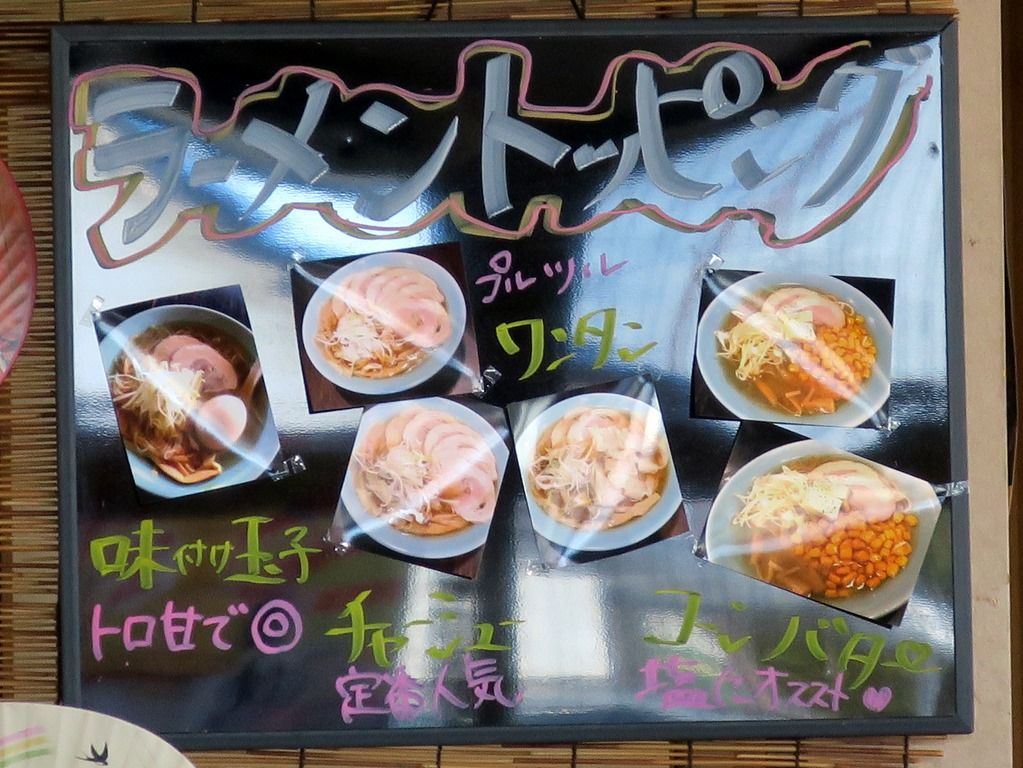 具はチャーシュー2枚、穂先メンマ、笹切りねぎ。