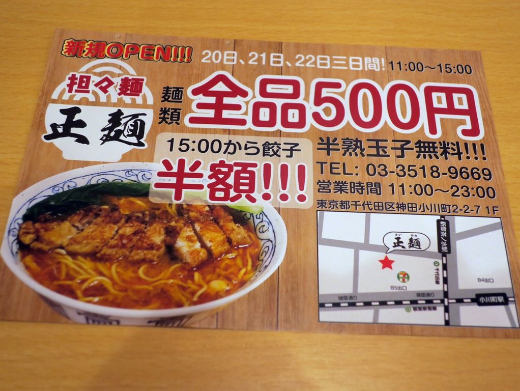 2018年8月20日仏滅、本日オープンの新店「担々麺 正麺」へ。