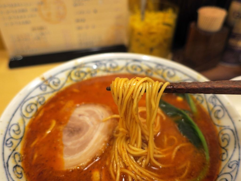 スープはさらさらの清湯胡麻辛醤油味。味的にははしごのだんだんめんと遜色なく、まさに支店と言っても通じそう。ただ大辛指定の辛さは控えめで、ここはもう少しリサーチが必要かと。