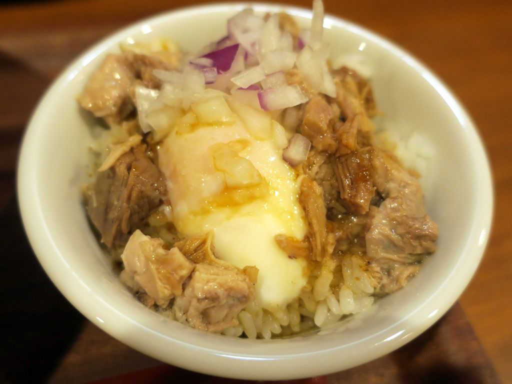 温玉がたまたまか君が溶け出さない固めで、黄味がとろ〜りはかなわず。タレがかかってますが薄味で、個人的にはカエシか醤油を軽く追加したい感じ。ブラックペッパーをかけたらパンチが出て、味にメリハリが付きました。