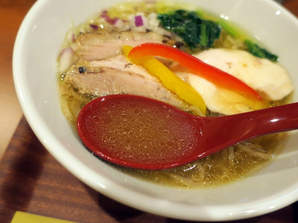 スープはさらさらの清湯塩味。麺屋ももは塩が一番人気でしたが、こちらでは塩のラインナップはなく、この醤油がベースライン。ただ、はんなりと柔らかく淡いしお味は、塩味と言っても通りそう。具の影響もあってか、洋風のコンソメスープの様な上品で洗練された味わい。魚介レスで、動物性のコクと野菜の滋味が溶け出した淡麗スープはまさに絶品。本当に美味しい!