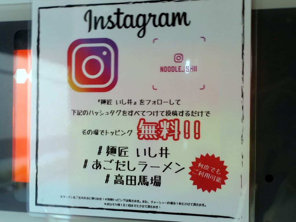 インスタをフォローして指定のハッシュタグを3つ付けて投稿すると、トッピング無料サービス。