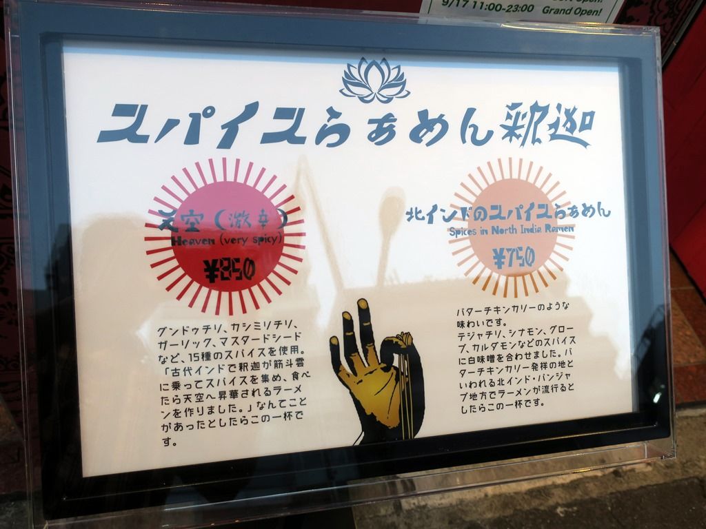 2018年9月16日、本日ソフトオープンの新店「スパイスらぁめん釈迦」へ。