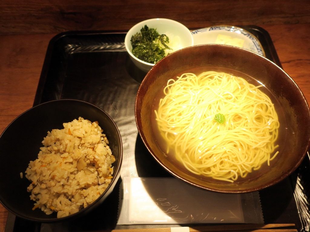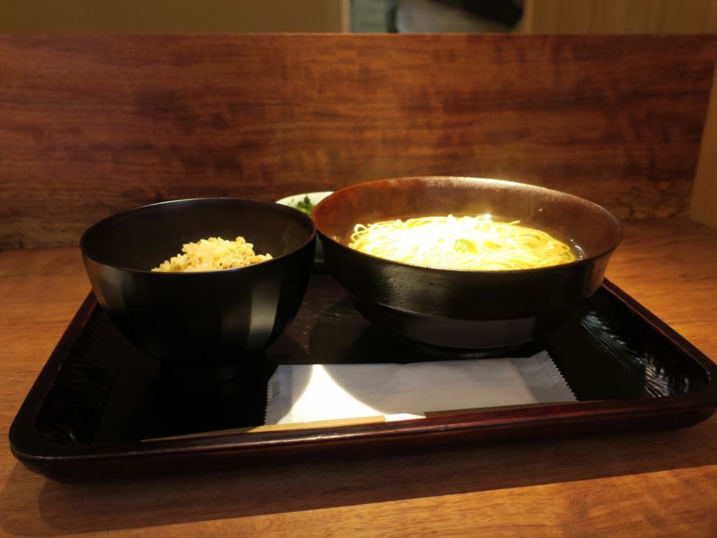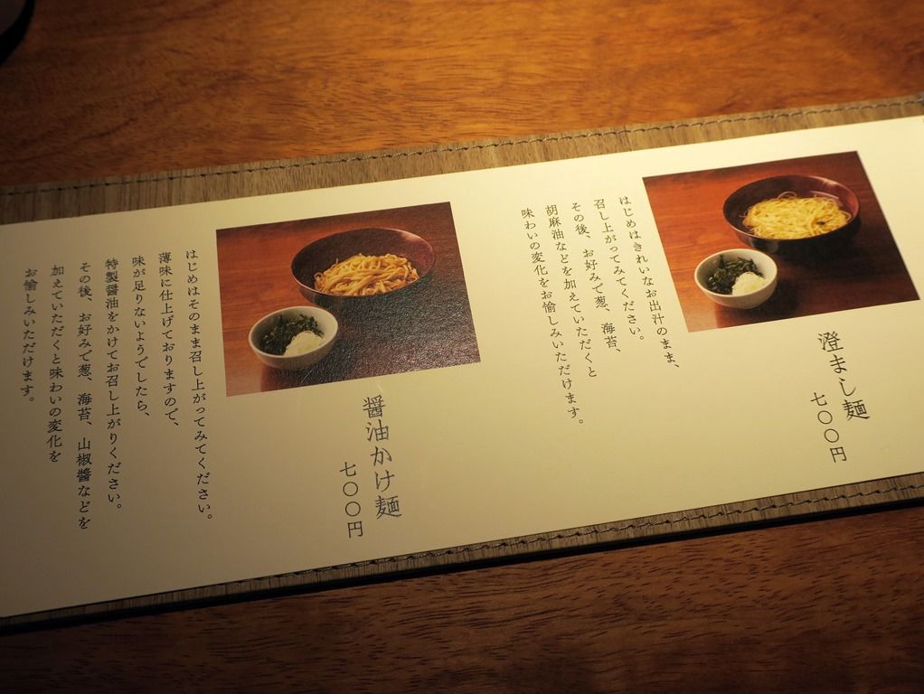 「澄まし麺」はあっさり和出汁に細麺、「醤油」かけ麺は太麺のまぜそば。移転前にあった麺の半盛りが無くなってフルサイズに統一は個人的に残念。ですが、以前の麺とご飯はAセットとして実質値下げ。