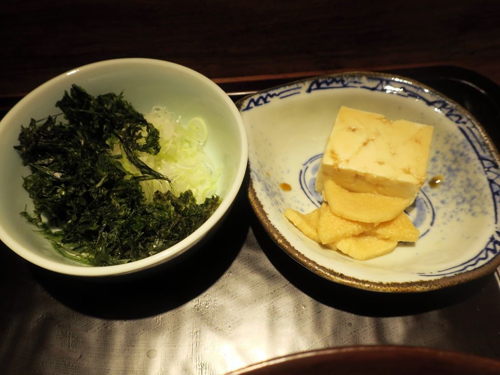薬味は別皿で岩海苔、きざみ白ねぎ。ご飯の副菜は、冷奴と夜の一品料理にある自家製醤油漬け長芋。