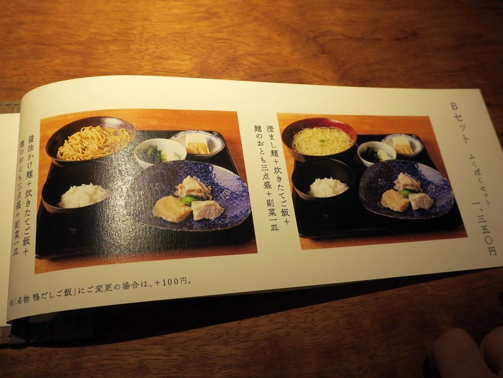 主なランチメニューは、澄まし麺700円、醤油かけ麺700円、Aセット名物鴨だしご飯セット1000円、Bセットふくぼくセット1350円、Cセットしらすご飯セット1250円Dセットしらすいくらご飯セット1500円、他。