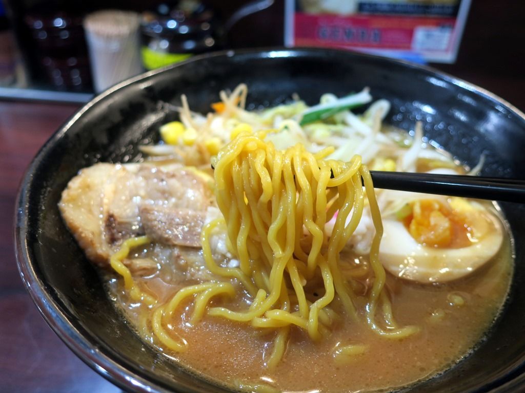 麺は朝日製麺所製の中太縮れタイプ。朝日製麺と村上朝日製麺所は違うので要チェック!メニューで麺は変えてないようですが、味の濃い味噌ラーメンにはちょうどいい感じで、スープと麺がバランスしてます。