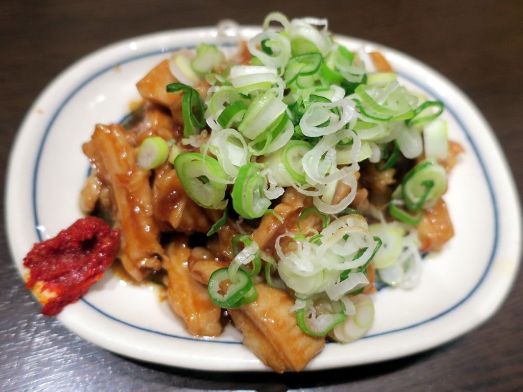 アテは名物「ガッチャン」(モツの味噌炒め)、ウマイ!