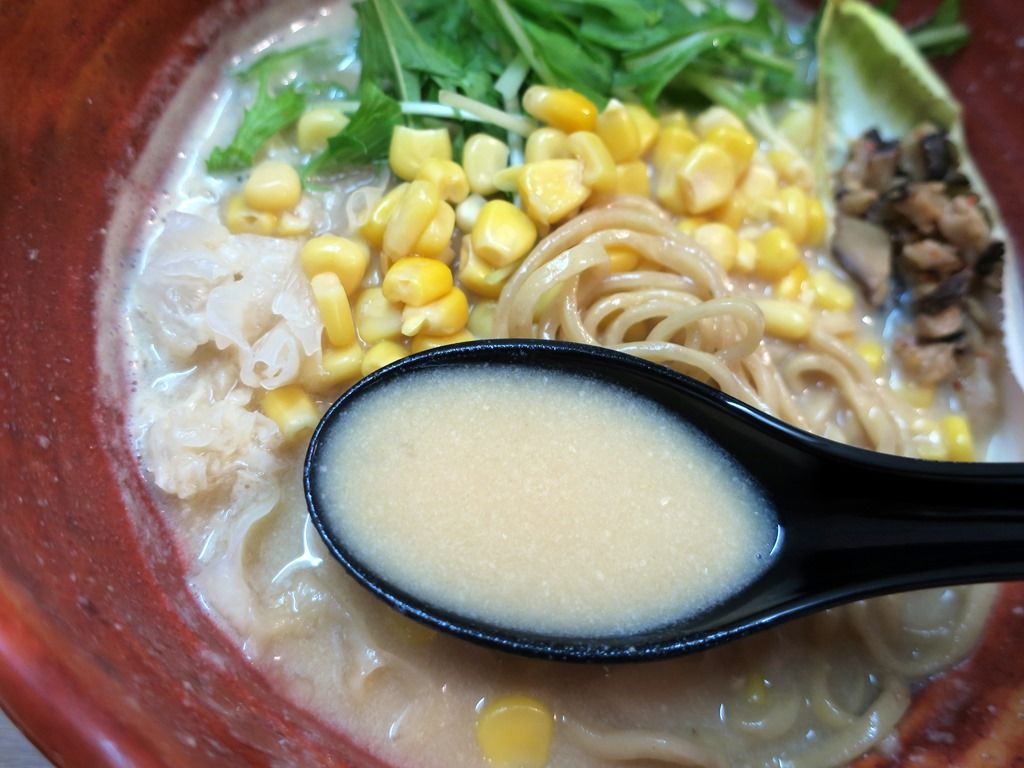 具は、デフォで載るローストトマトが完売とのことで、代用のコーンがトッピング。そのため、通常のビジュアルとは異なります。