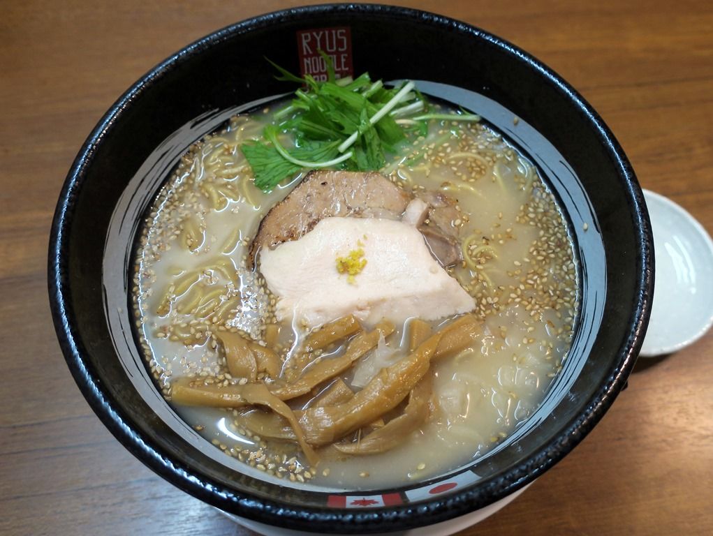 「RYUS NOODLE BAR」は、2013年創業。コンセプトは、「日本の本格的なラーメン」と「カナダ人が好む味覚」の融合。店舗の場所は、9月24日でラー博を卒業したYUJI RAMENの跡地。