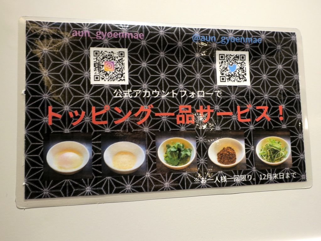 12月末まで、ツイッター・インスタの公式アカウントフォローでトッピング1品サービスあり。