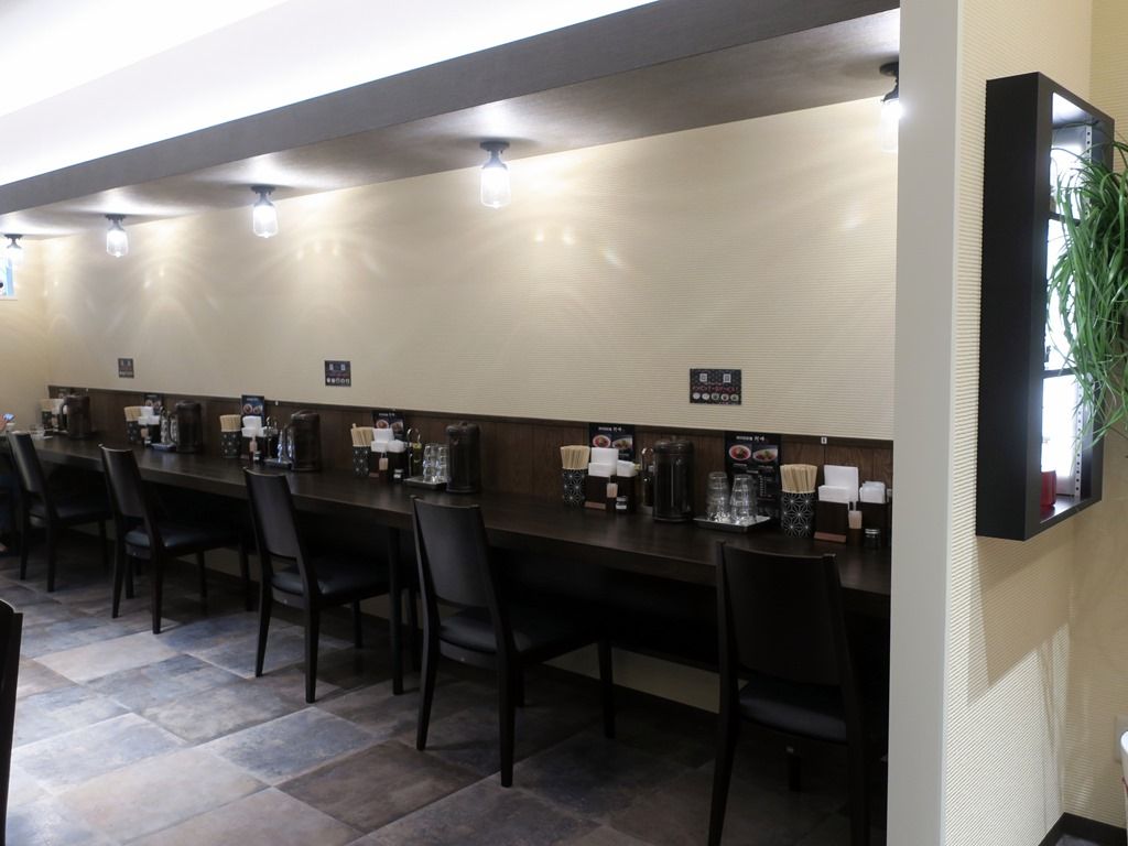 BGMはニューウェーブ。箸は割り箸。卓上調味料は、 酢、黒酢。