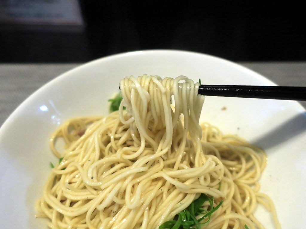 麺は菅野製麺製のストレート中細タイプ。パッツンパッツンの固ゆでで、パキパキ音がしそうなほど。それがまた極ニボスープに良く合っていてウマ~!