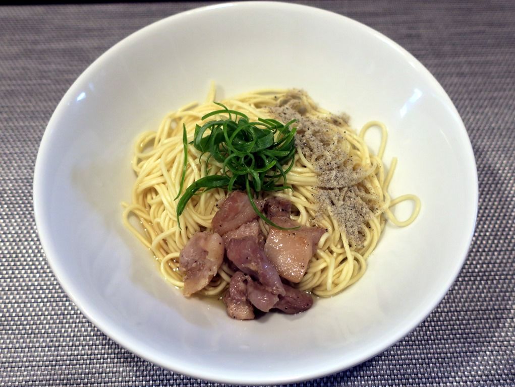 おいしく完食!次回は「かけそば(塩)x和え玉(醤油)」で。ごちそうさま!