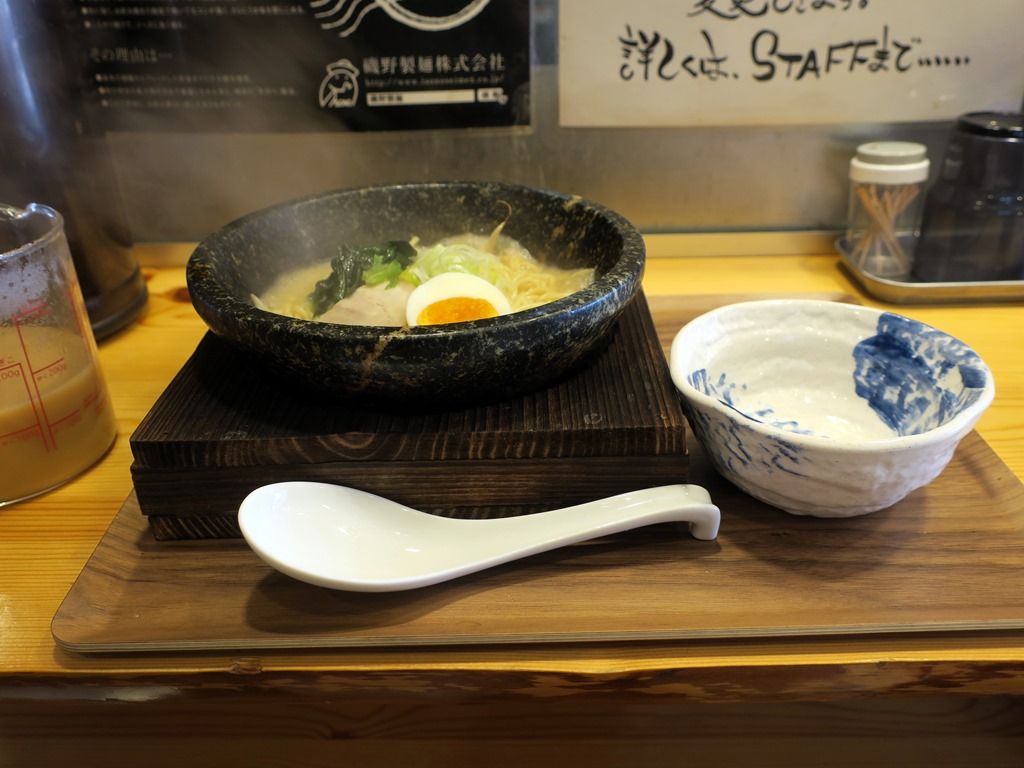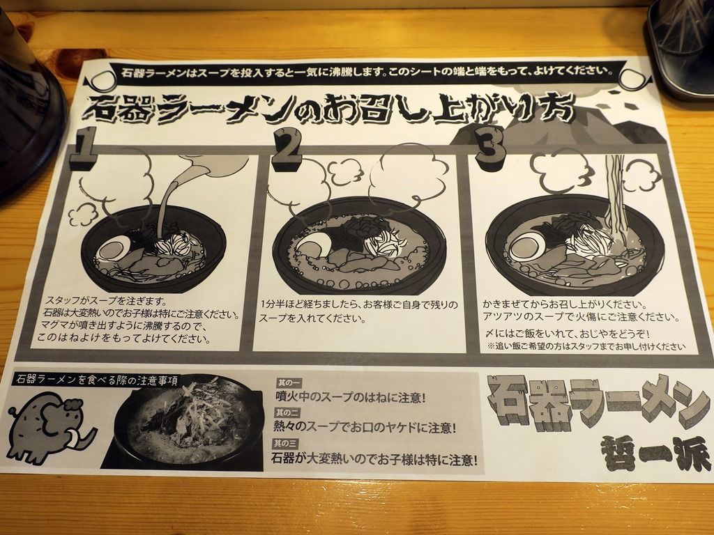 石鍋を300℃まで熱してテーブルでスープを注ぎ、ペーパーシートでガードさせるスタイルは、石焼らーめん火山が昔からやってる方式。火山のインスパイアかオマージュ、トリビュート!?