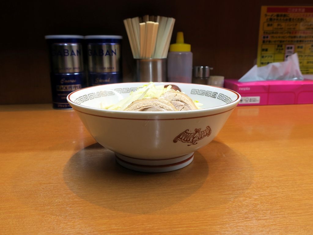 コールは提供直前に「ニンニク入れますか?」の問いかけ。アイテムは、ニンニク、ヤサイ、アブラ、カラメが指定可能。