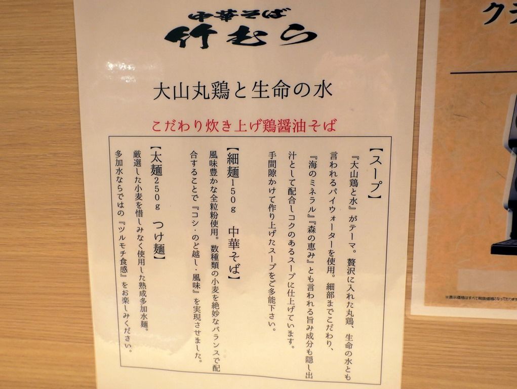 スープはさらさらの清醤油味。大山鶏の丸鶏をπウォーターで炊いたスープに入れて海のミネラル、森の恵みと呼ばれる旨味成分を隠し味として配合。ます田が「地養丸鶏と最高級羅臼昆布」.だったので、基本同じかな!?カエシが立って鶏油の旨味が強いのが特徴で、鶏清湯のトレンド、キレッキレの味わいを具現。ます田は初日に行って、初日ゆえのブレか薄くてぼんやりとした感じ。今回の竹むらは、出汁もカエシもメリハリのあるシャープな出で立ち。ぶっちゃけはやし田にそっくりなわけですが、食材が似てると味も似ちゃうのかな。ともあれ、鶏の旨味に溢れた芳醇な味わいでとても美味しい!