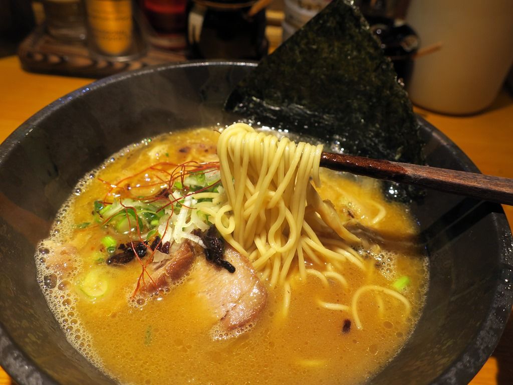 麺は菅野製麺のストレート中細タイプ。しっかりとゆで上げてあり、少し麺柔めですが麺自体の良さが味わえます。
