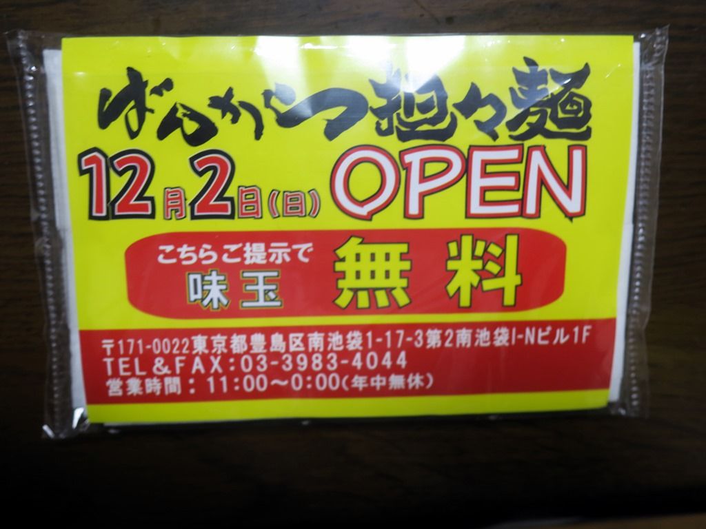 2018年12月2日仏滅オープン^^; 東京豚骨拉麺ばんから池袋本店が担々麺の店にリニューアル。矢守さんから情報貰ってましたが、資本系過ぎて優先度低めに。ですが、担々麺の誘惑に抗しきれず、行っちゃいますw