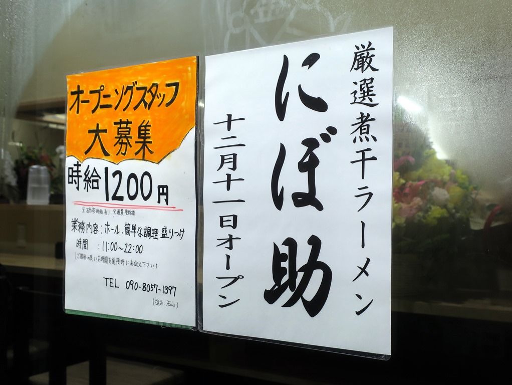 2018年12月11日、本日オープンの新店「厳選煮干ラーメン 初代 にぼ助」へ。