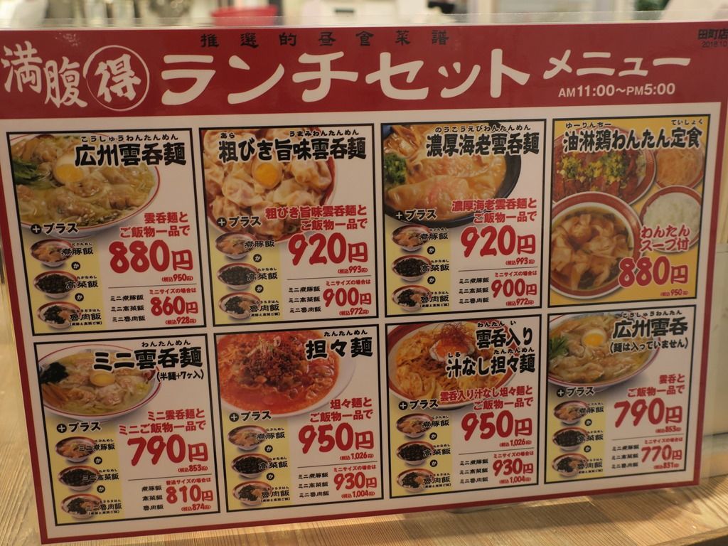 主な麺メニューは、広州雲呑麺740円、清湯海老雲呑麺790円、濃厚海老雲呑麺820円、雲呑担々麺880円、雲呑入り汁なし担々麺880円、他。価格は税抜き表記。