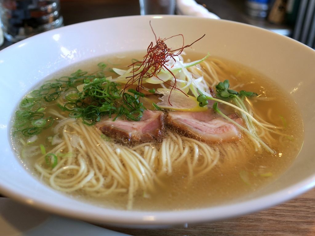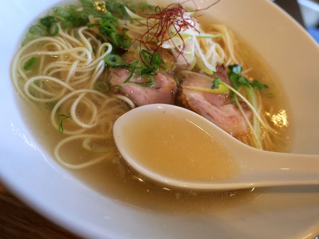 スープはさらさらの清湯ほぼ塩味。薀蓄によると、国産豚骨を使用してコクのある清湯スープに仕上げたとのこと。鶏魚介不使用。豚骨清湯で真っ先に思い浮かぶのが東中野のかしわぎ。同店は掃湯という技法で白湯を清湯化している様ですが、こちらの調理法は不明。かしわぎもそうですが、清湯とは思えない分厚いコクと深みのある出汁で、ものすごく美味しい!
