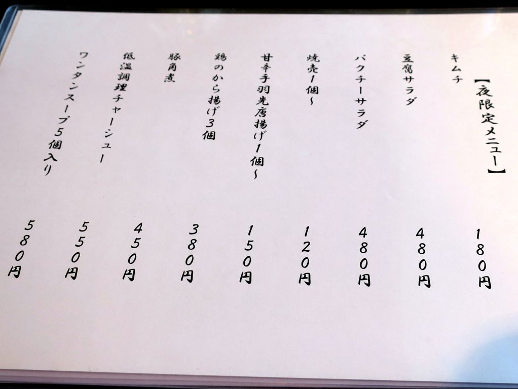 夜はおつまみとドリングを堪能して、〆に拉麺がいただける麺酒場営業。